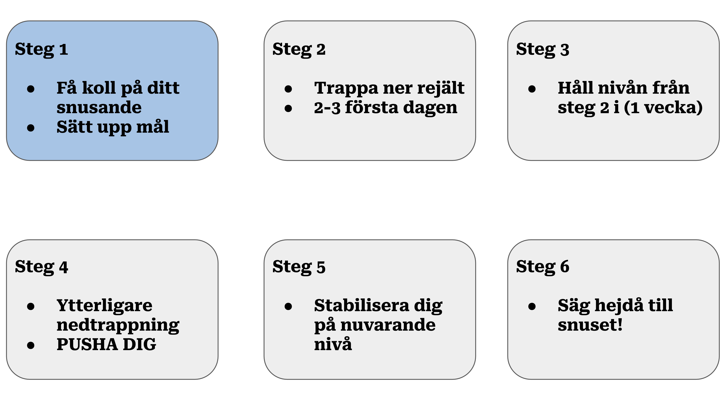 Vi tror att alla snusare någon gång har funderat på att sluta snusa. Vi sökte på internet efter hur man bör gå tillväga för att göra det, men vi hittade bara tips – ingen fullständig plan som gick att följa rakt av. Det ändrar den här artikeln på.